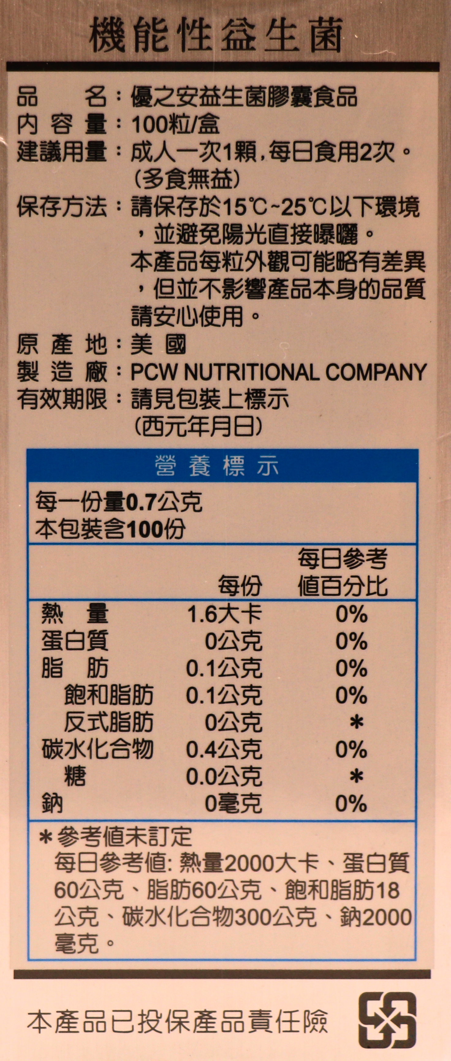 優之安益生菌100粒/膠囊